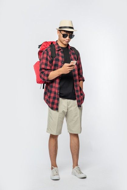 Free Photo _ A man wearing glasses goes out to travel, wear a hat and carry a backpack